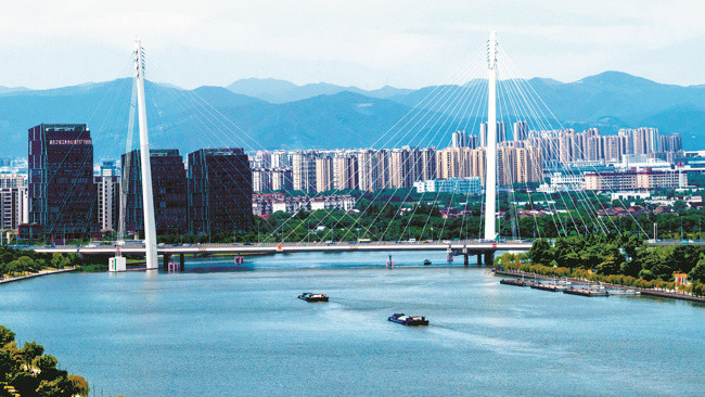 图为电煤运输船正航行于姚江水域,通过杭甬运河将电煤运往绍兴等地电厂,保障夏季用电高峰的能源供应。(林昱辰、李越)